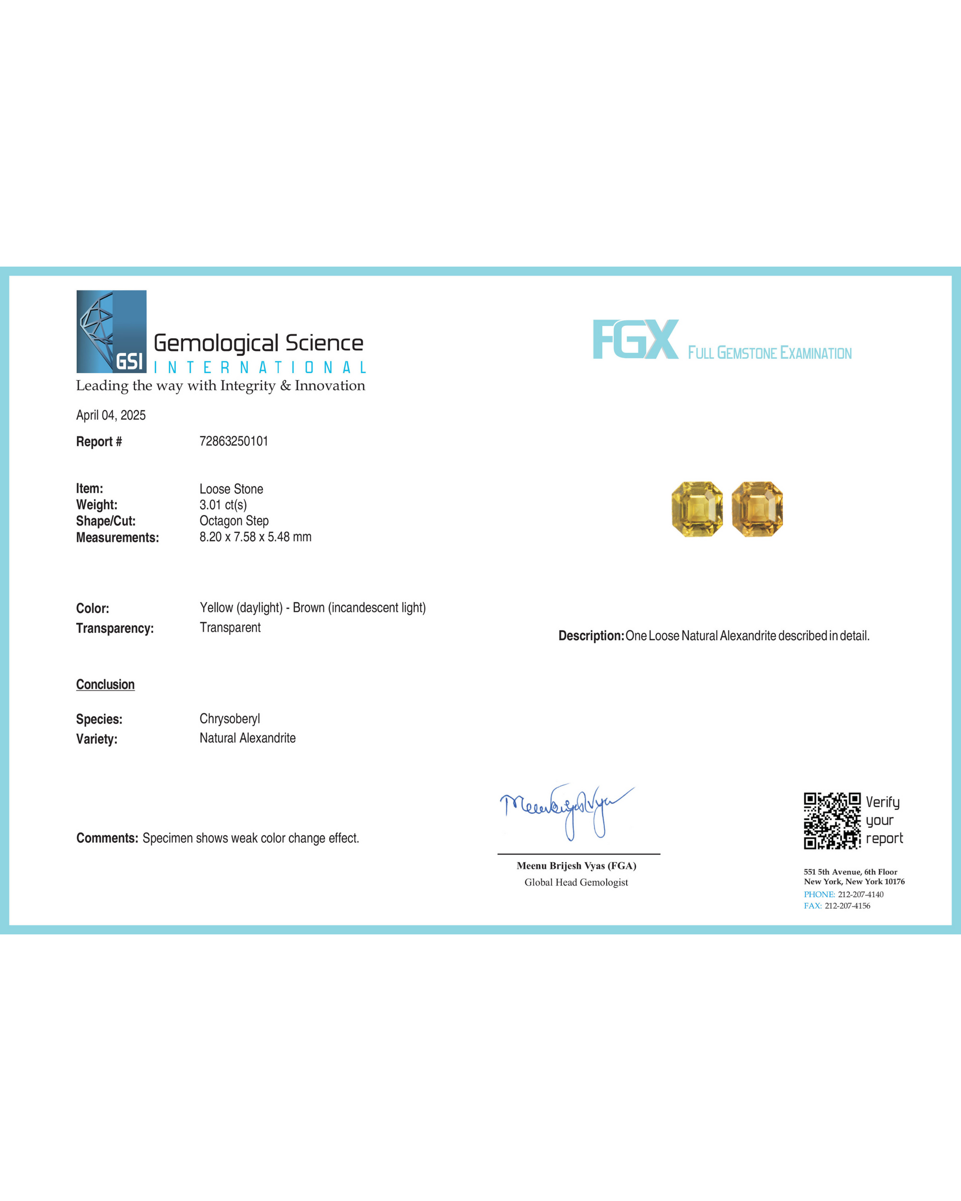 GSI Certified 3.01 Ct - 3.34 Ratti Natural Alexandrite