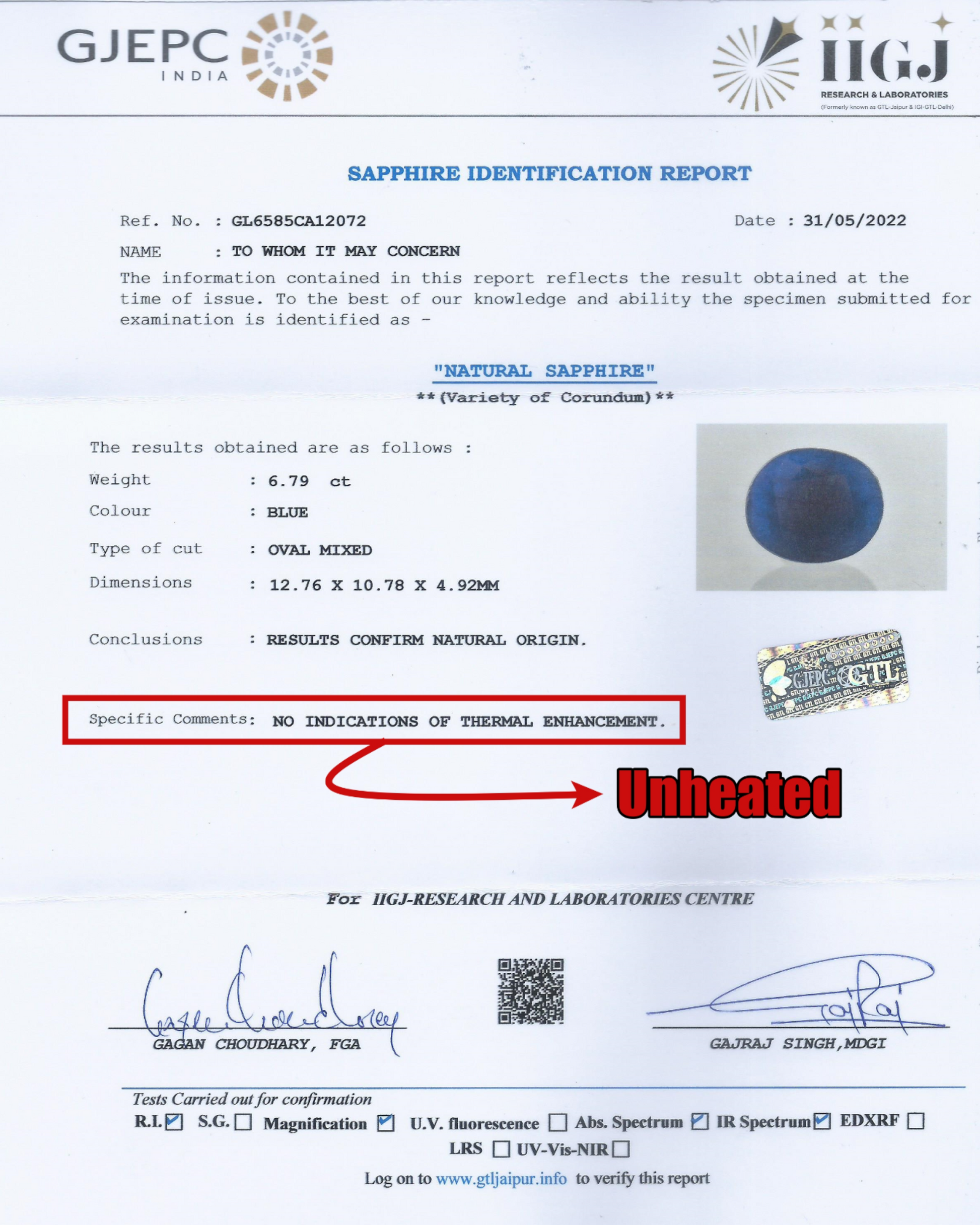GTL Certified 6.79 Ct - 7.54 Ratti Natural Unheated Blue Sapphire-Neelam