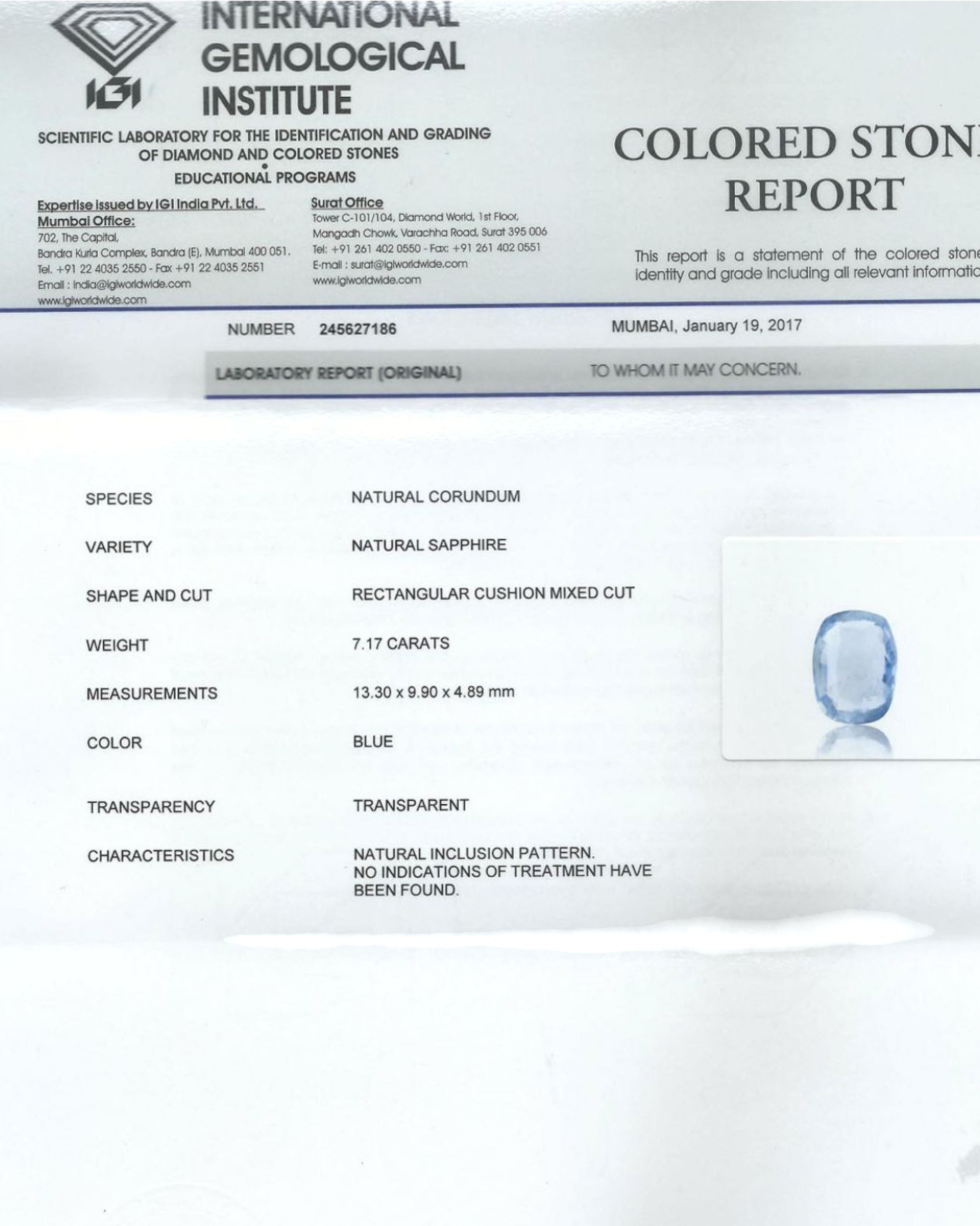 IGI Certified 7.17 Ct - 7.96 Ratti Natural Unheated Ceylon Blue Sapphire - Neelam