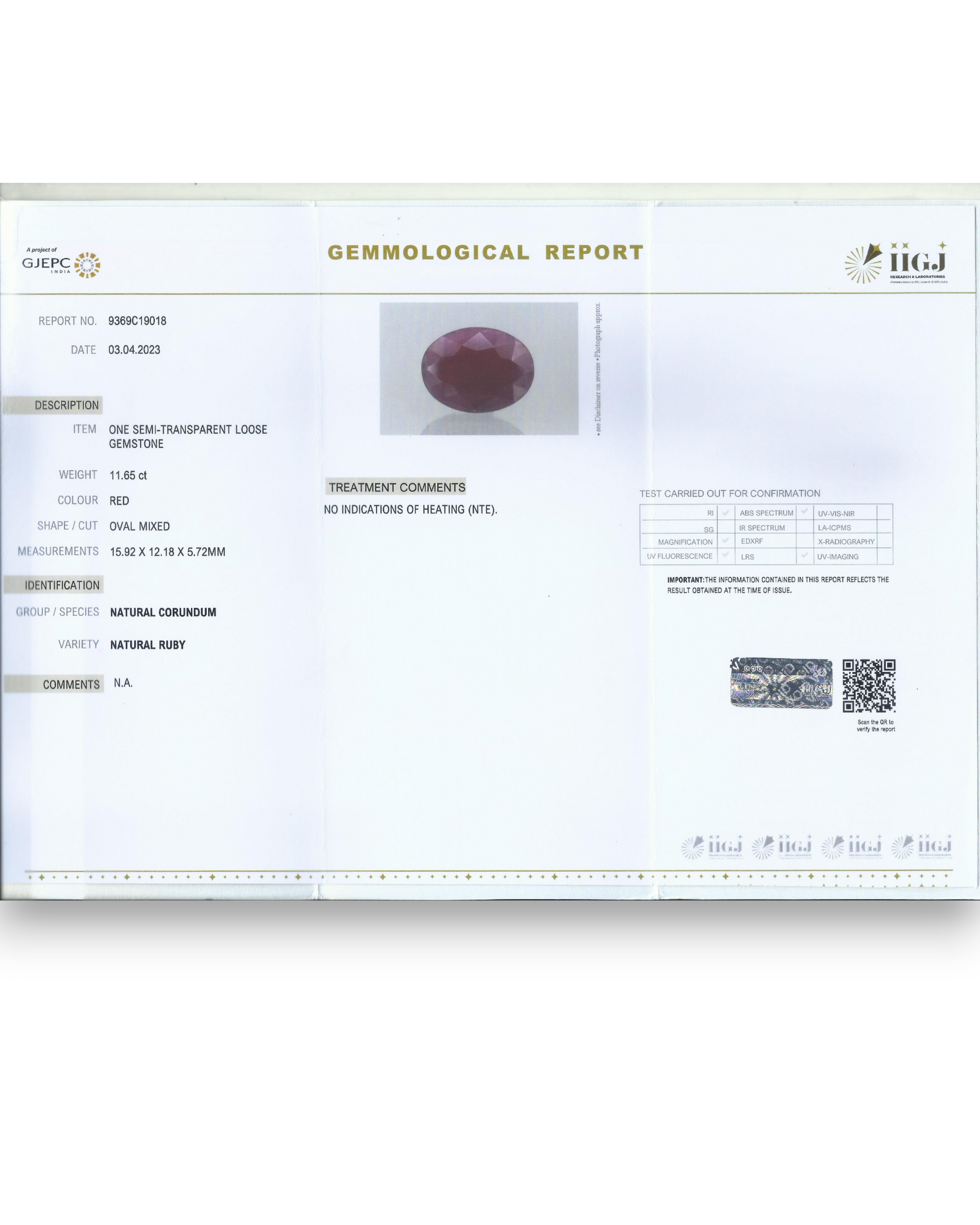 IIGJ Certified 11.65 Ct - 12.94 Ratti Unheated Untreated Natural Ruby Manik