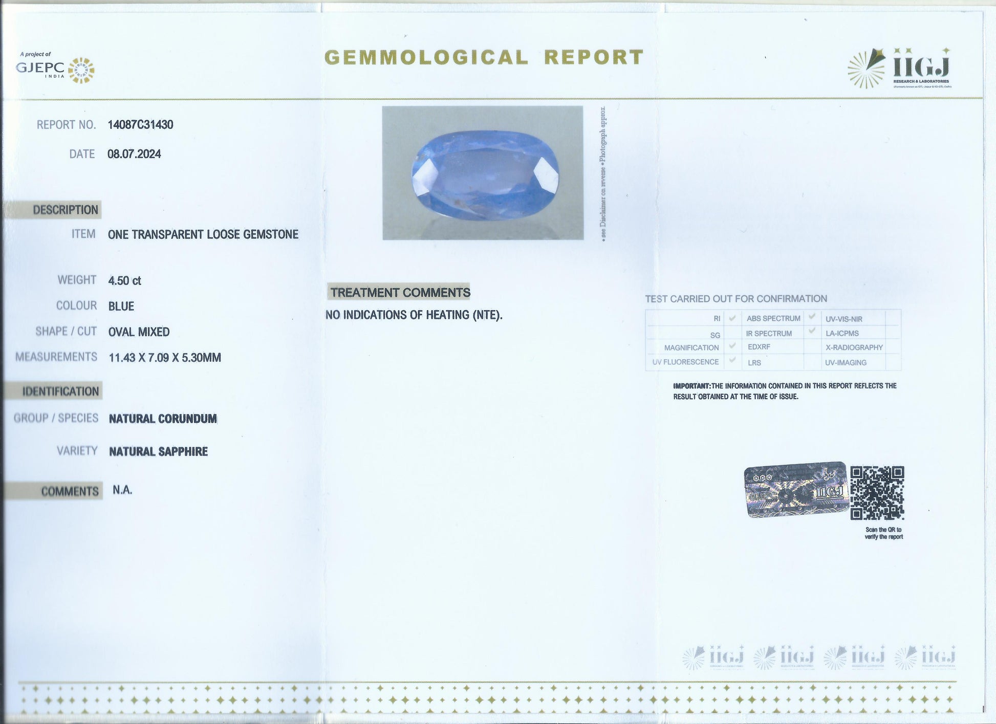 IIGJ Certified 4.50 Ct - 5 Ratti Natural Unheated Ceylon Blue Sapphire - Neelam