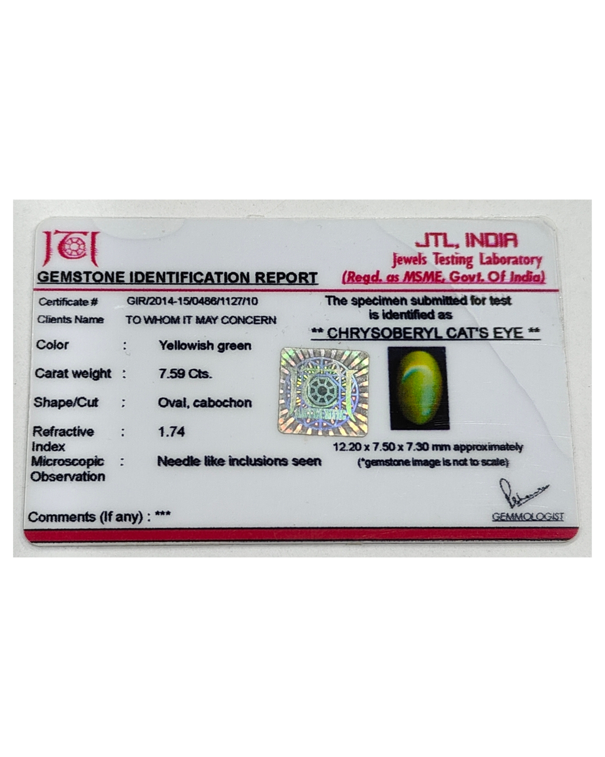 Premium Grade 7.59 Cts - 8.43 Ratti Natural Ceylon Chrysoberyl Cats eye/Lehsuniya